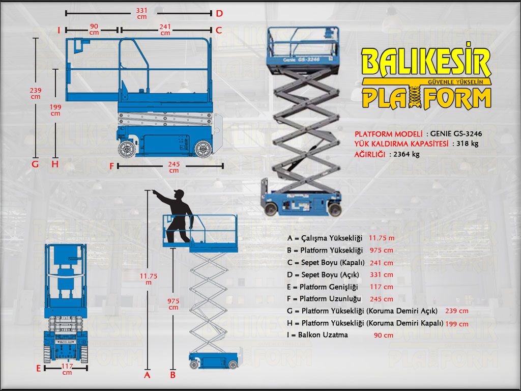 Gönen Platform'dan Kiralık "Genie GS-3246" model 12 Metre Akülü Makaslı Platform. Gönen, Balıkesir Platform Kiralama ve Satış